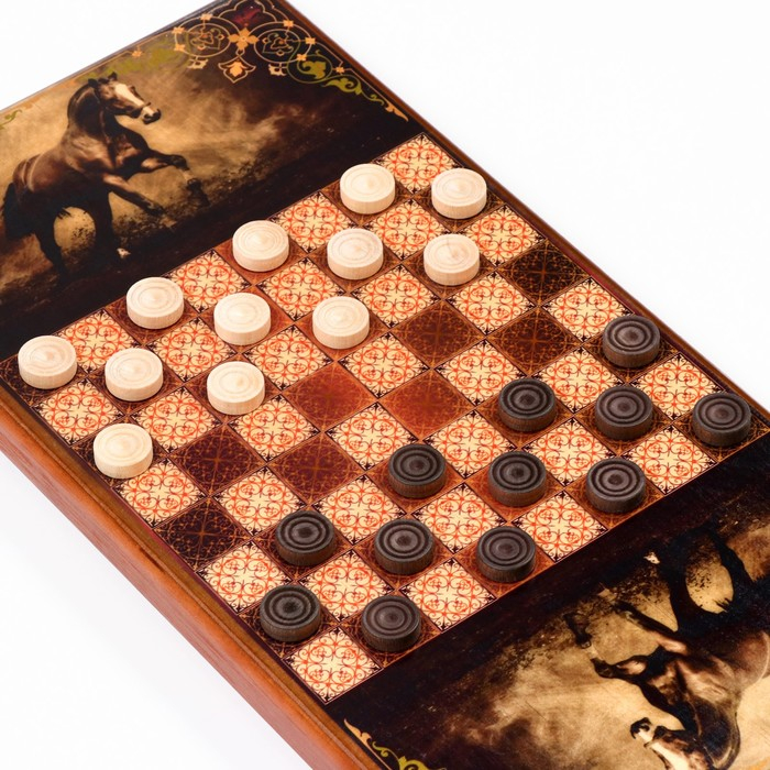 Нарды деревянные большие, с шашками "Конь вороной", настольная игра, 60 х 60 см