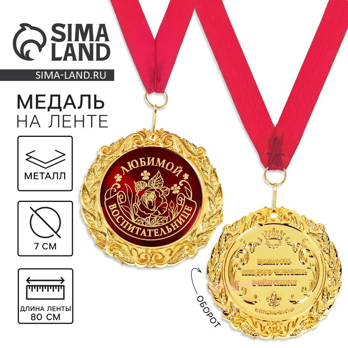 Медаль на открытке «Любимой воспитательнице», d = 7 см.