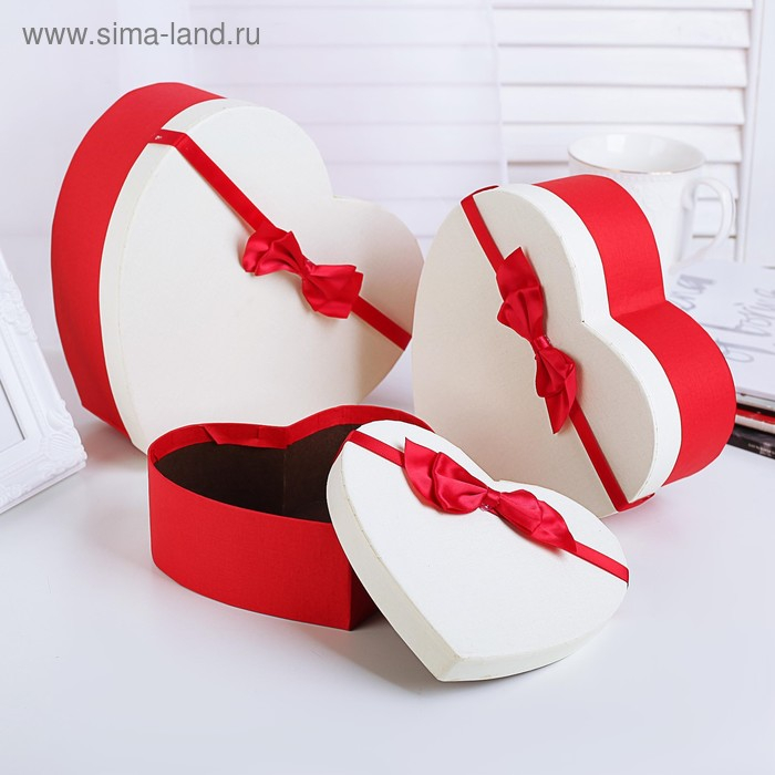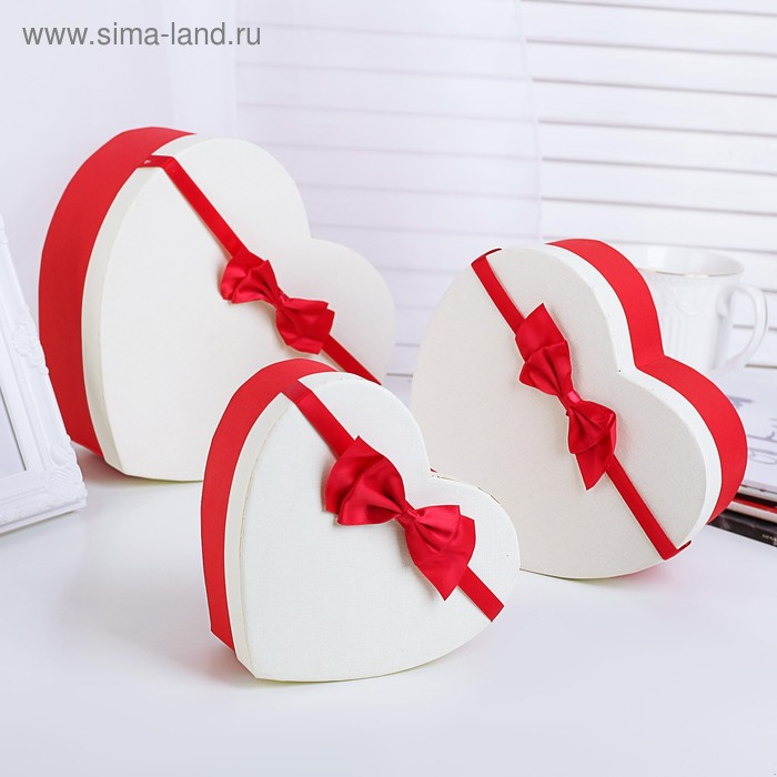 Набор коробок 3 в 1 сердце, алый-белый 21 х 19 х 9 - 15.5 х 14 х 6 см