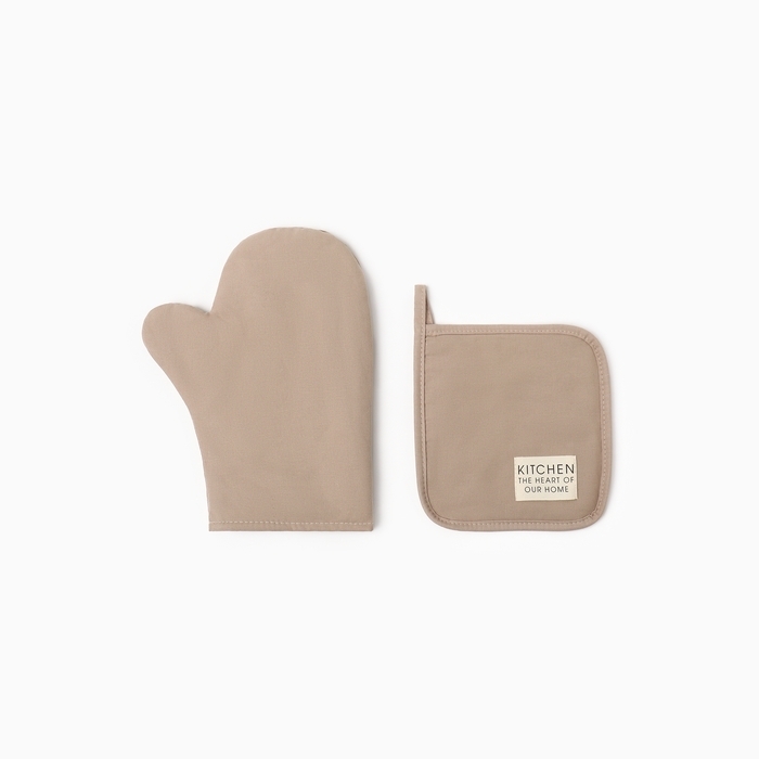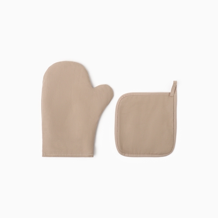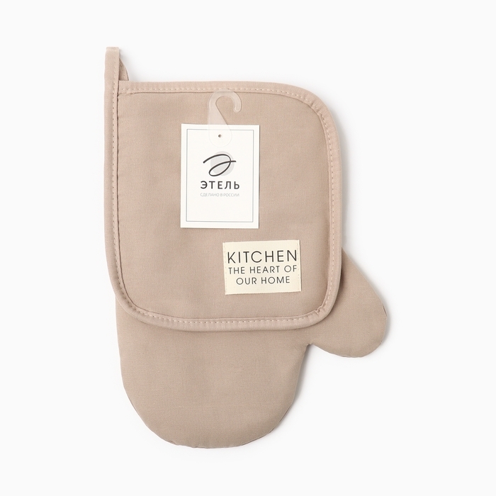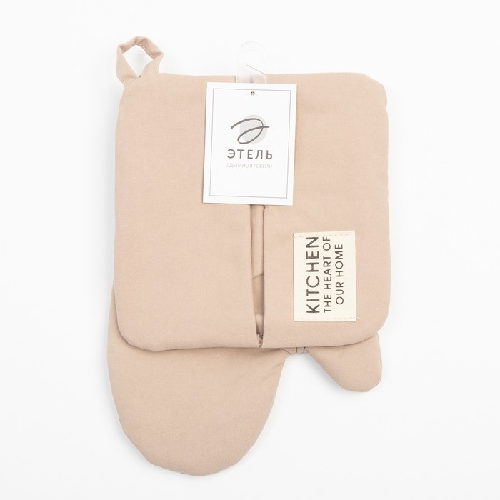 Набор кухонный Этель Kitchen, цвет бежевый, варежка-прихватка 18х29 см, прихватка 19х19 см
