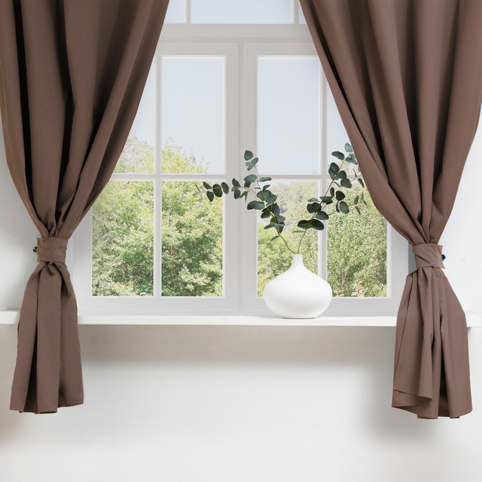 Комплект штор для кухни с подхватами Этель "Kitchen", цвет коричневый, 150х180 см - 2 шт