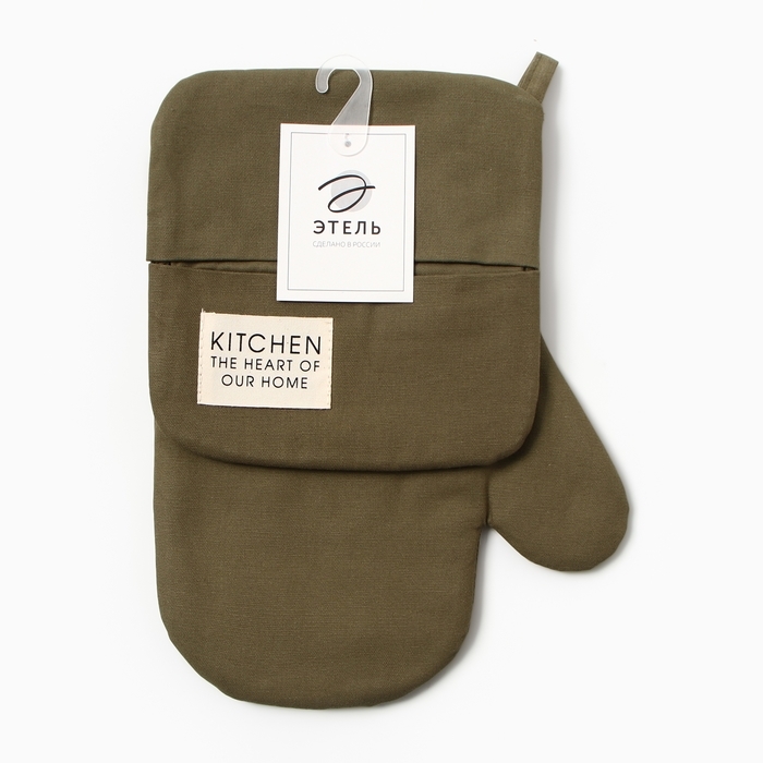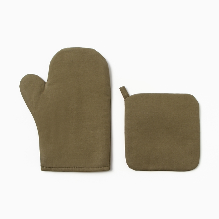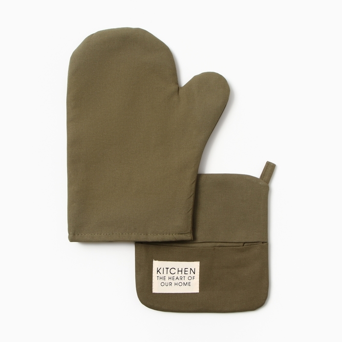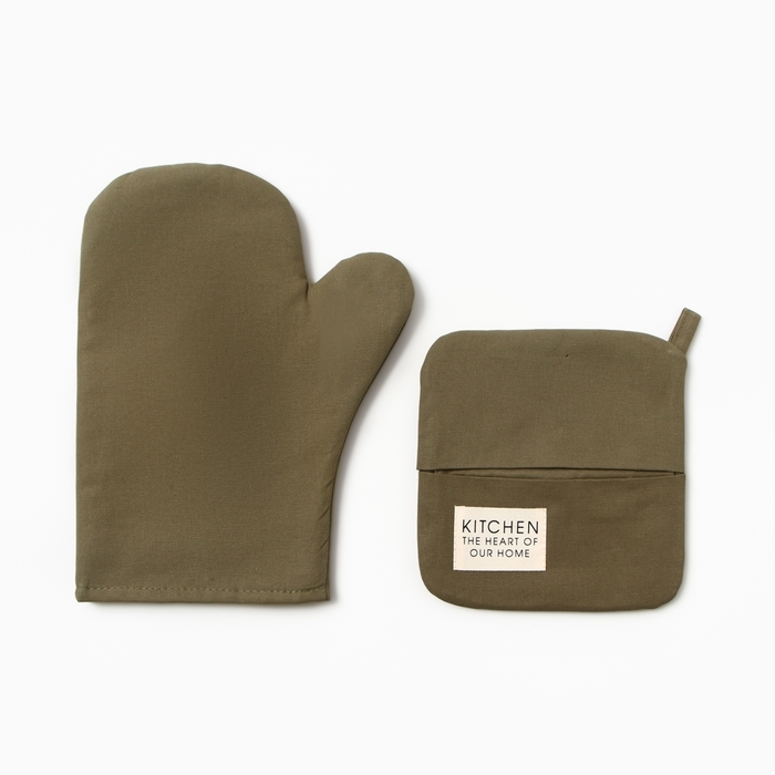 Кухонный набор Этель Kitchen, цвет зелёный, варежка-прихватка 18х29 см, прихватка 19х19 см