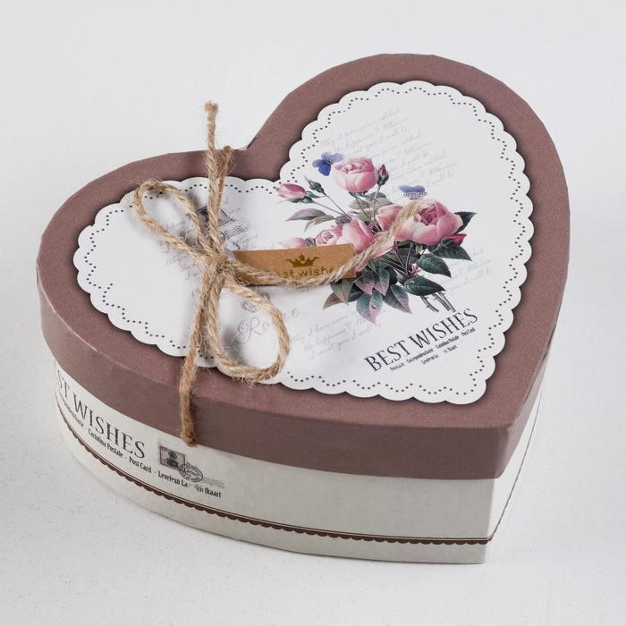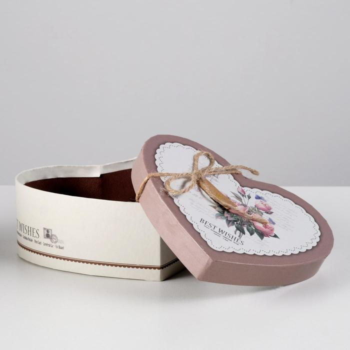 Набор коробок 3 в 1 сердца "Пионы" коричневый, 21 х 19 х 9 - 15.5 х 14 х 6 см