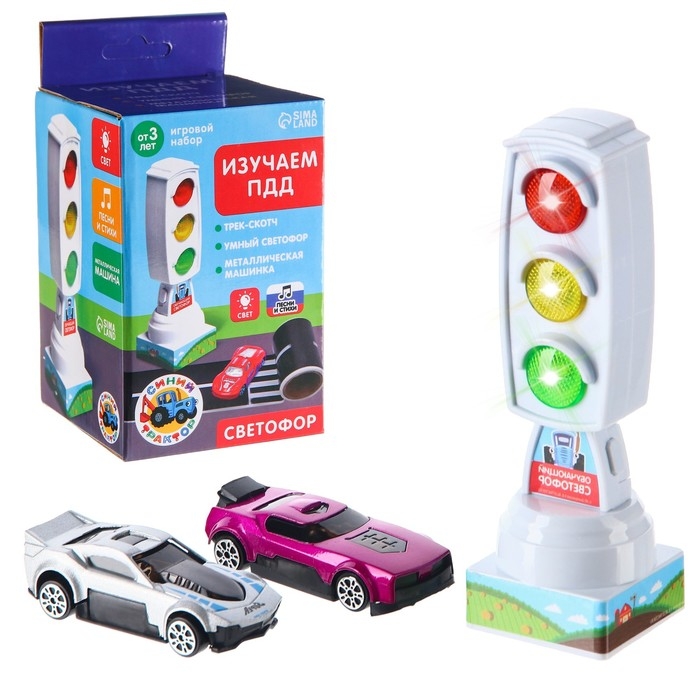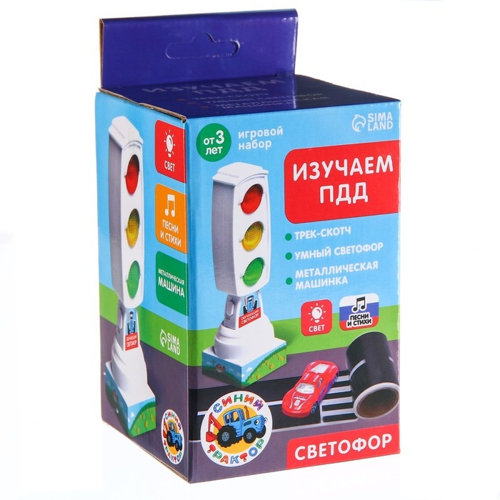Светофор с машинкой и скотч-дорогой «Изучаем ПДД», русский чип, Синий трактор
