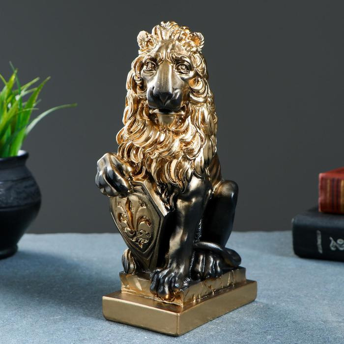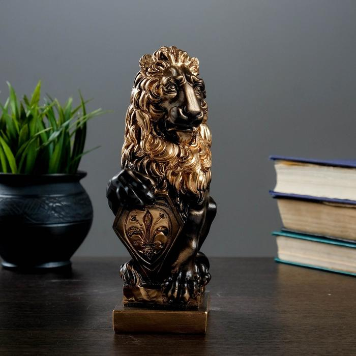 Фигура "Лев со щитом" бронза 10х7х21см