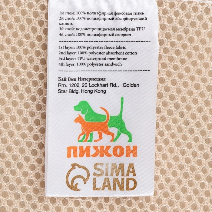 Пелёнка для животных многоразовая впитывающая, 70 х 100 см, голубой