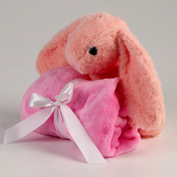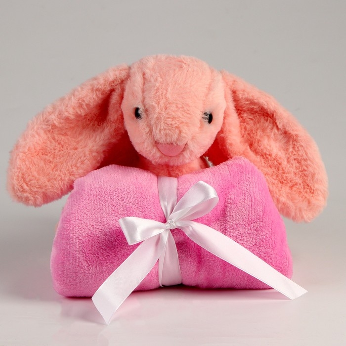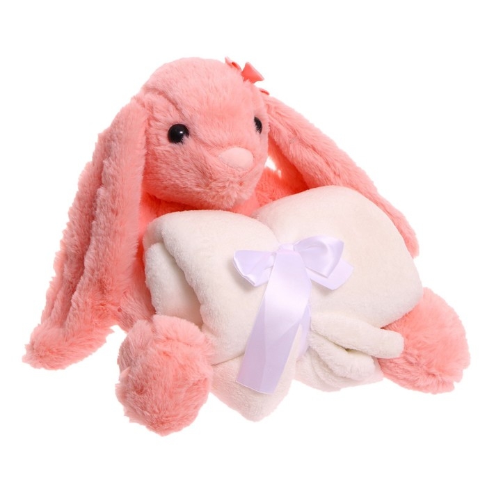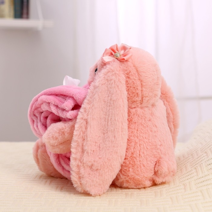 Мягкая игрушка с пледом «Зайка», цвет розовый