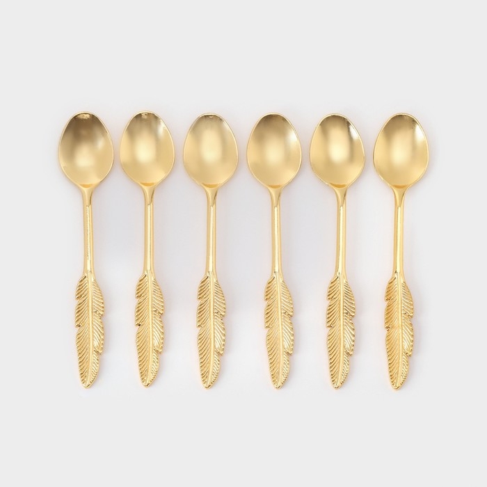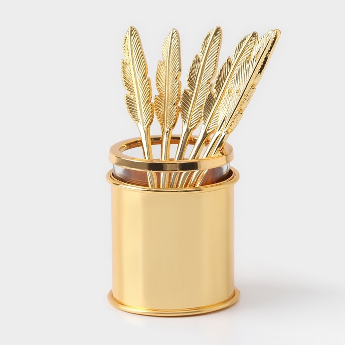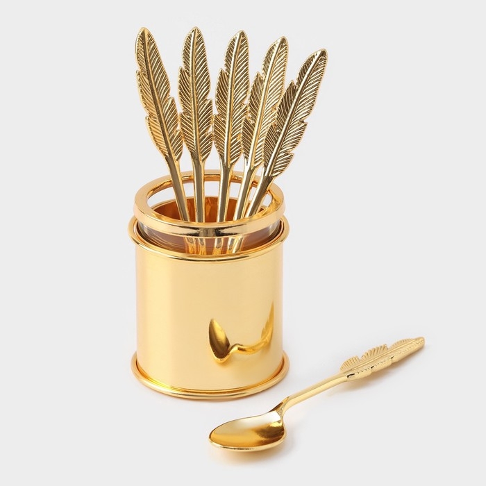 Набор ложек на подставке «Авалон. Перо», 5,5×5,5×7,5 см, 6 шт, цвет золотой