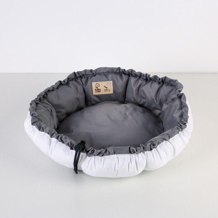 Стяжка на шнурке позволяет регулировать диаметр лежанки. А если полностью распустить стяжку, то лежанка превратится в матрасик.