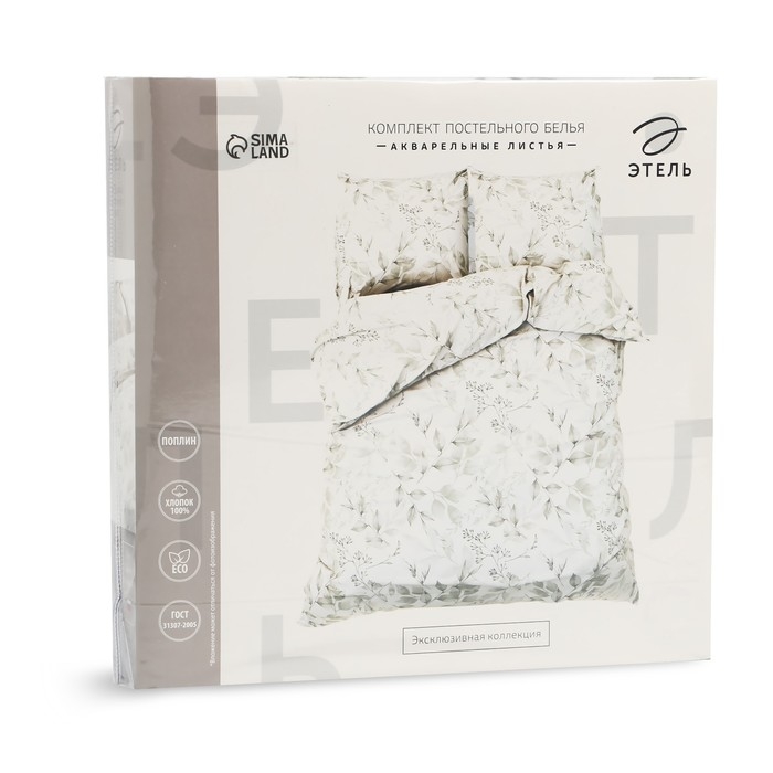Постельное бельё Этель Евро «Акварельные листья» 200х215 см, 220х240 см, 70х70 см -2 шт, поплин 125 г/м2