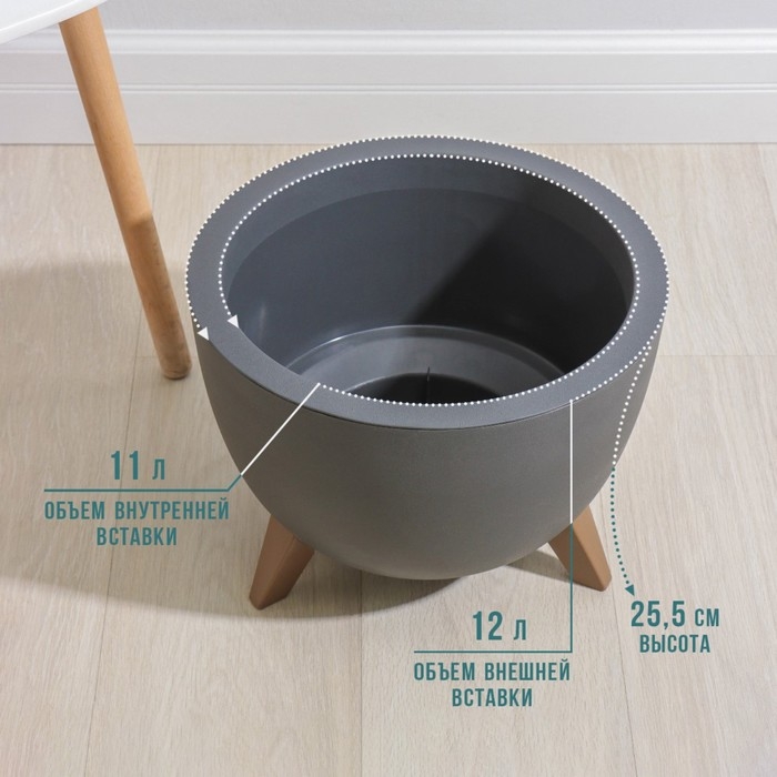 Кашпо на ножках «Флориан», 12 л, d=35 см, h=25,5 см, цвет графитовый