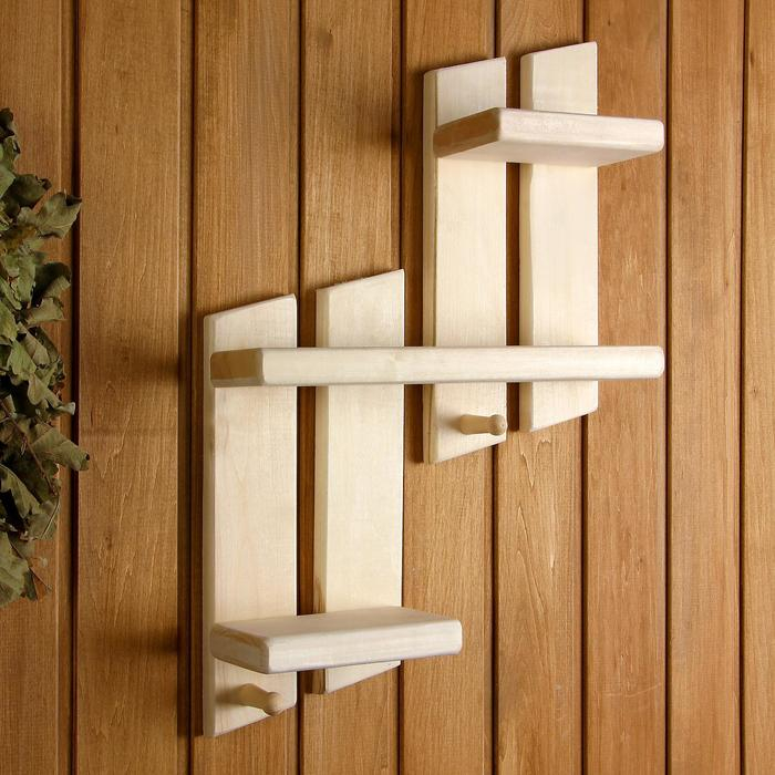 Полка "Ступенька" 2 крючка 10 × 46 × 64см, липа "Добропаровъ"
