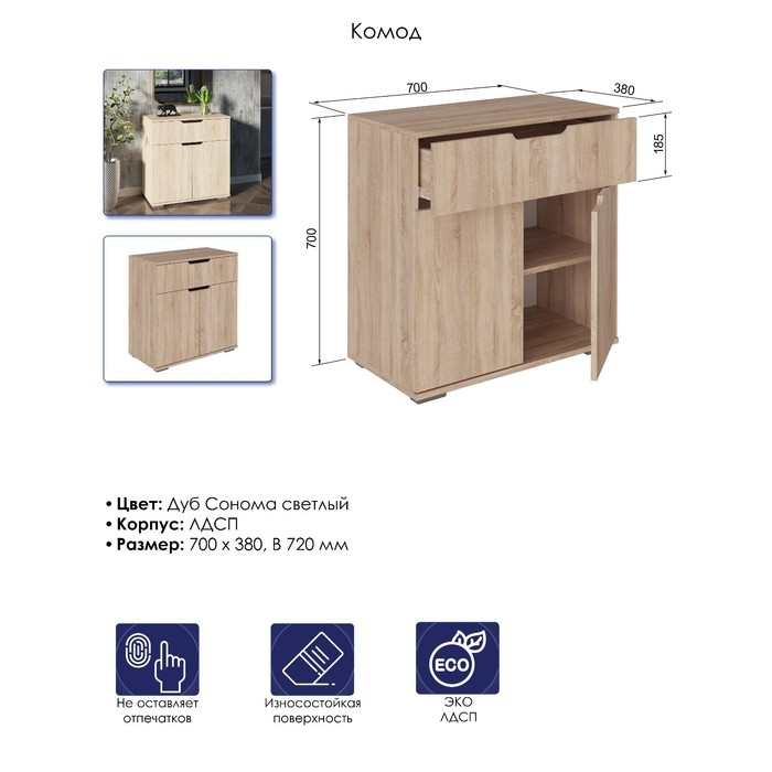 Комод 2Я-03, 700х380х720, Дуб сонома