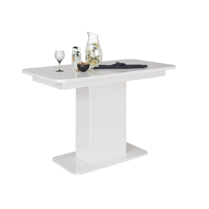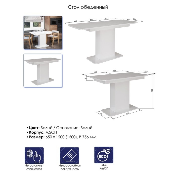 Стол кухонный на одной ножке раскладной СО-3, 1200(1500)х650х756, Белый/Белый – стильный, удобный и функциональный. Оригинальная модель стола, которая идеально впишется в большинство разных интерьеров. Потребуется всего пару действий, чтобы рабочая поверхность стола увеличилась со 1200 мм до 1500 мм. В ножке стола есть отсек для хранения + с дверцей. Проверенное ЛДСП класса эмиссии Е1 и фурнитура от отечественных поставщиков. Современный вид и качественные материалы делают этот стол износостойким и стильным.