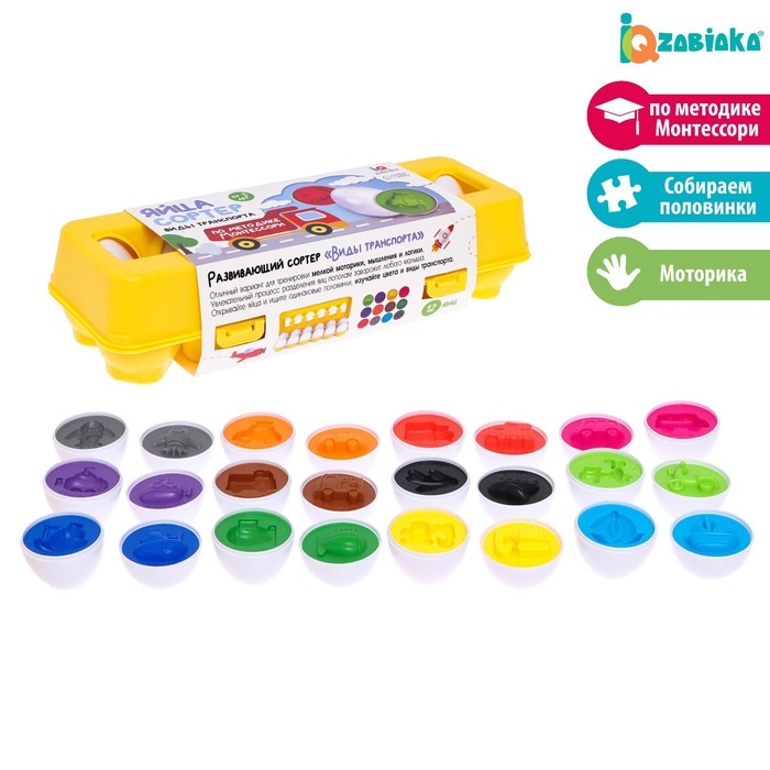 Сортер «Виды траспорта. Яйца», по методике Монтессори, 12 штук