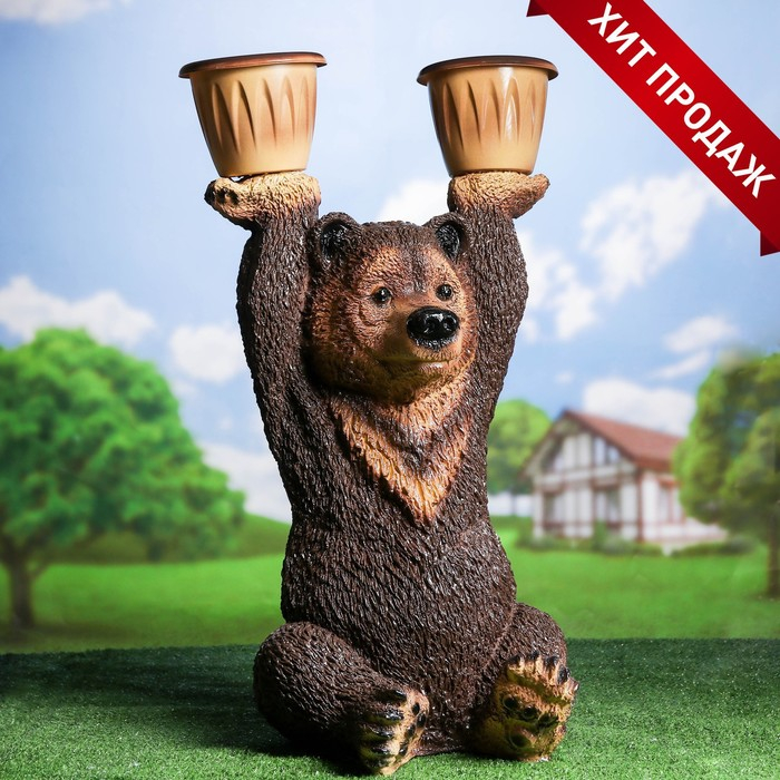 Садовая фигура "Медведь большой с кашпо" 30х40х75см