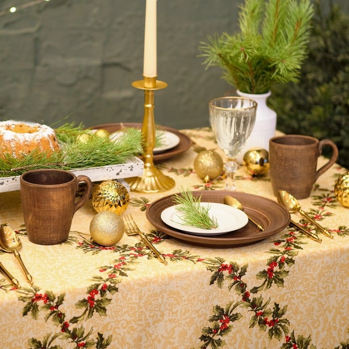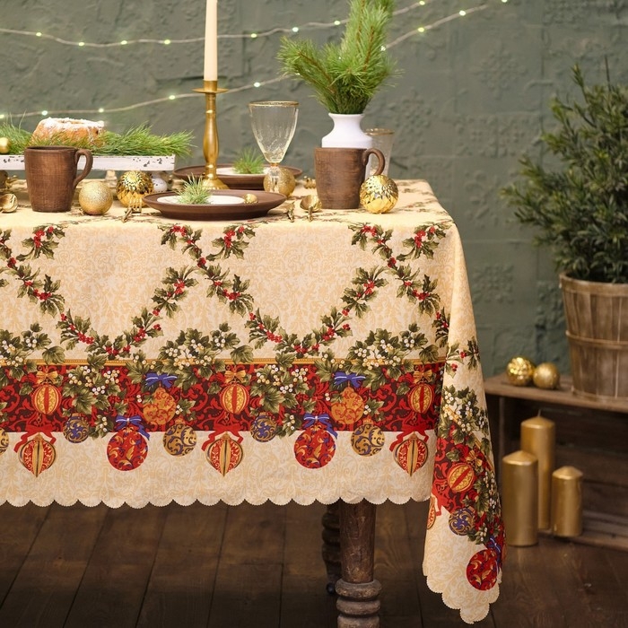 Скатерть новогодняя Доляна "Ёлочные игрушки" 145*180 см, 100% п/э