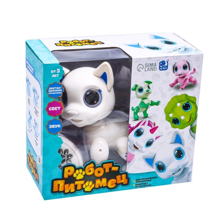 Робот собака «Питомец» IQ BOT, на пульте управления, интерактивный: звук, свет, на батарейках, белый