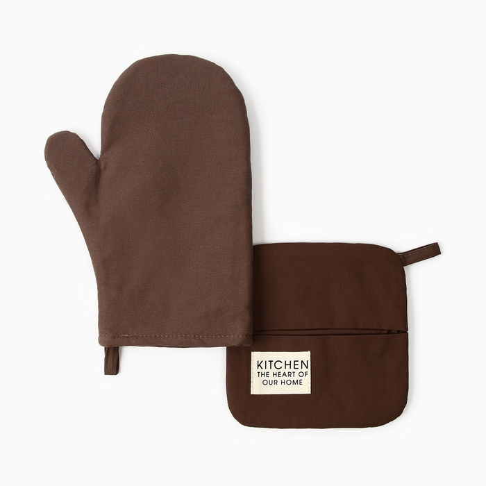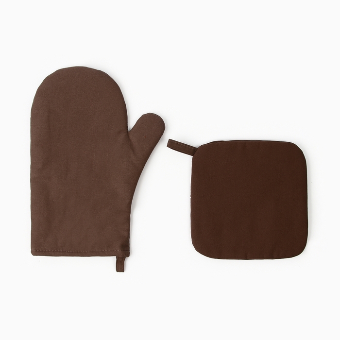 Набор кухонный Этель Kitchen, цвет. коричневый, варежка-прихватка 18х29 см, прихватка 19х19 см