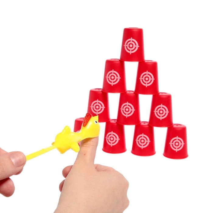 - Игра длится 5 раундов. Игроки по очереди пытаются сбить пирамиду из стаканов. За каждый сбитый стакан игрок получает 1 балл.