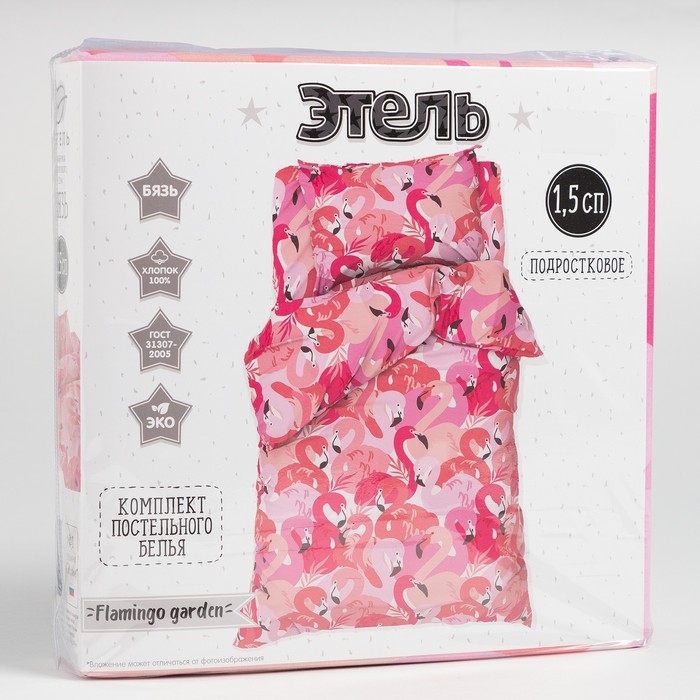 Постельное бельё Этель 1,5 сп "Flamingo garden" 143х215 см, 150х214 см, 50х70 см -1 шт, 100% хлопок, бязь