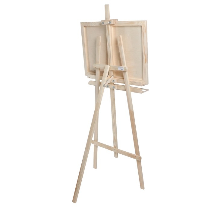 Классическая модель типа ""Лира"", предназначена для работы на подрамнике с холстом или на планшете (любые виды бумаг). Выполнен из натуральной высококачественной доски сосны. Угол наклона опорной ноги можно изменять, высота полки и фиксатора холста также регулируется. Экономичный вариант мольберта подходит для работы в студии, демонстрации картин, а так же как предмет интерьера. Дополнительно имеет отверстие для стакана.В комплект входит планшет.
