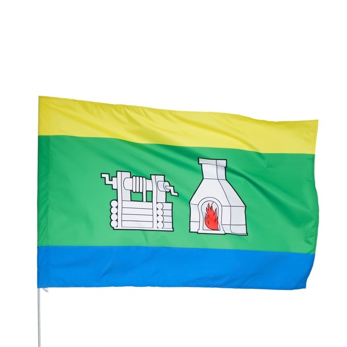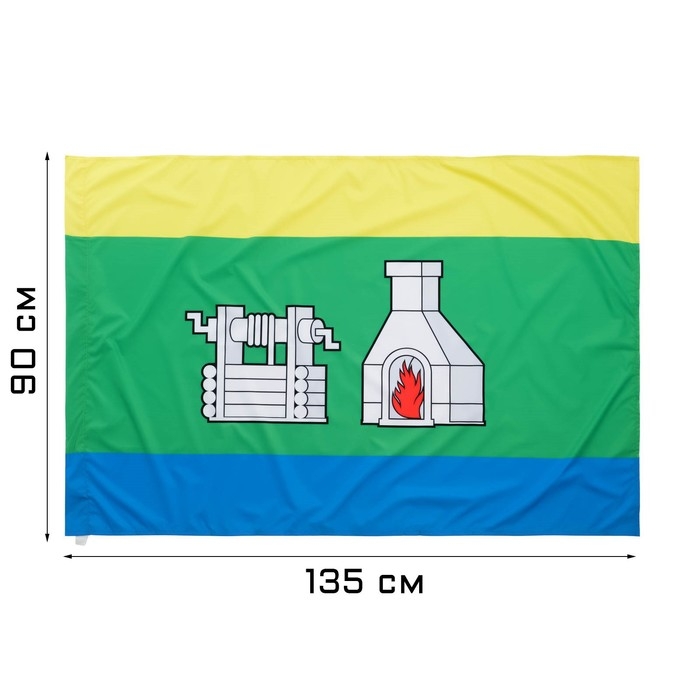Размер флага 90 х 135 см, выполнен из полиэфирного шёлка, обладающего такими качествами, как: прочность и долговечность, плотность, легкость, не впитывает влагу, не выгорает под действием ультрафиолета.