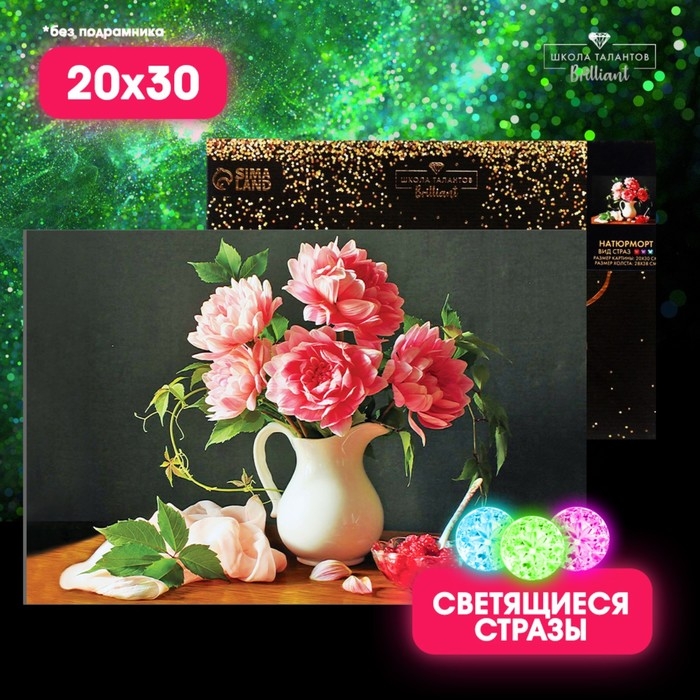 Алмазная мозаика с полным заполнением со светящимися стразами на холсте «Натюрморт», 20 х 30 см