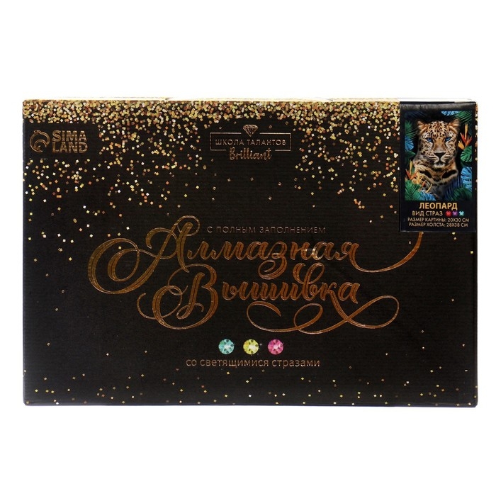 Алмазная мозаика с полным заполнением на холсте «Леопард», 20 х 30 см