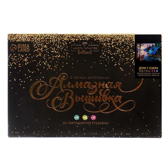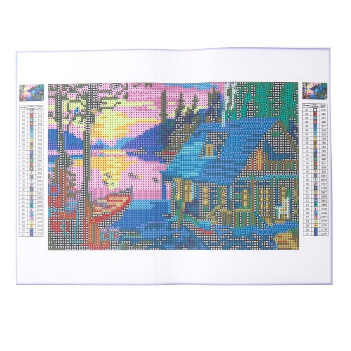 Алмазная мозаика с полным заполнением на холсте «Дом у озера», 20 х 30 см