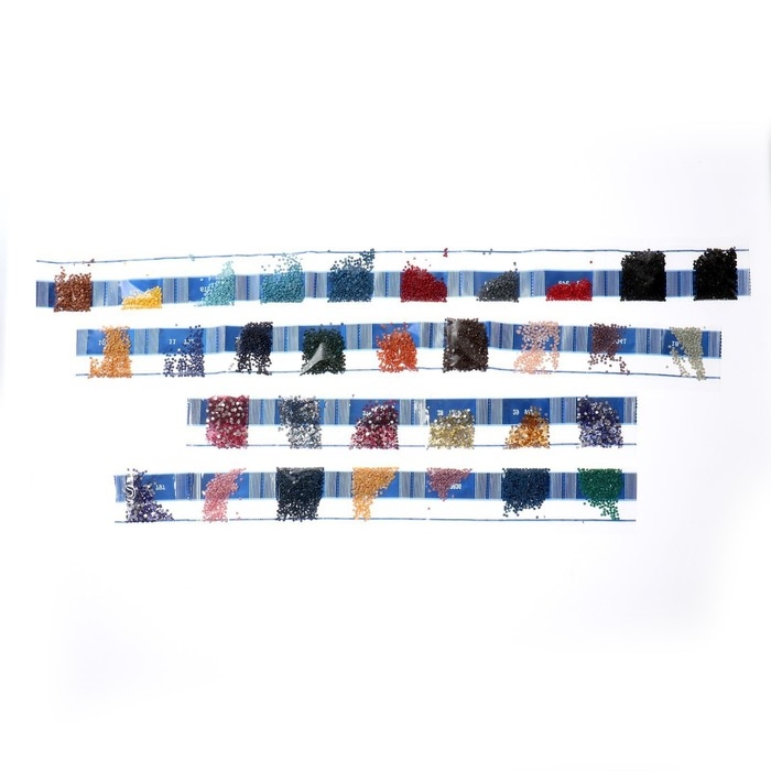 Разложите кристаллики с помощью карандаша по указанной схеме, заполнив полотно. На картине уже обозначены необходимые оттенки. Холст с клеевым покрытием будет надёжно удерживать стразы.