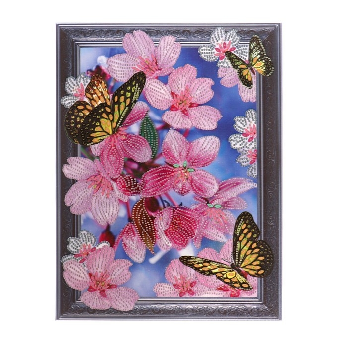 Алмазная мозаика с частичным заполнением и форменными стразами на раме «Цветы», 30 х 40 см