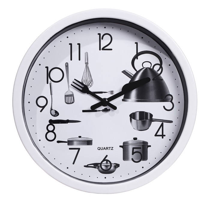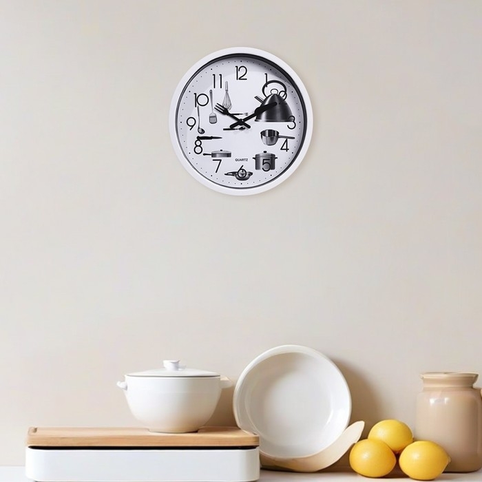 Часы настенные, для кухни, "Кухонные приборы", бесшумные, d-20 см