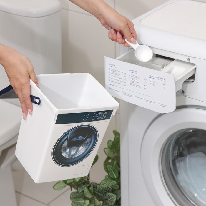 Контейнер для стирального порошка идеально дополнит вашу ванную комнату и позволит эргономично разместить средства для стирки. Крышка плотно закрывается и легко открывается. Благодаря этому содержимое контейнера защищено от попадания влаги и просыпания. Кроме того, бокс оснащён удобной ручкой для лёгкой транспортировки.