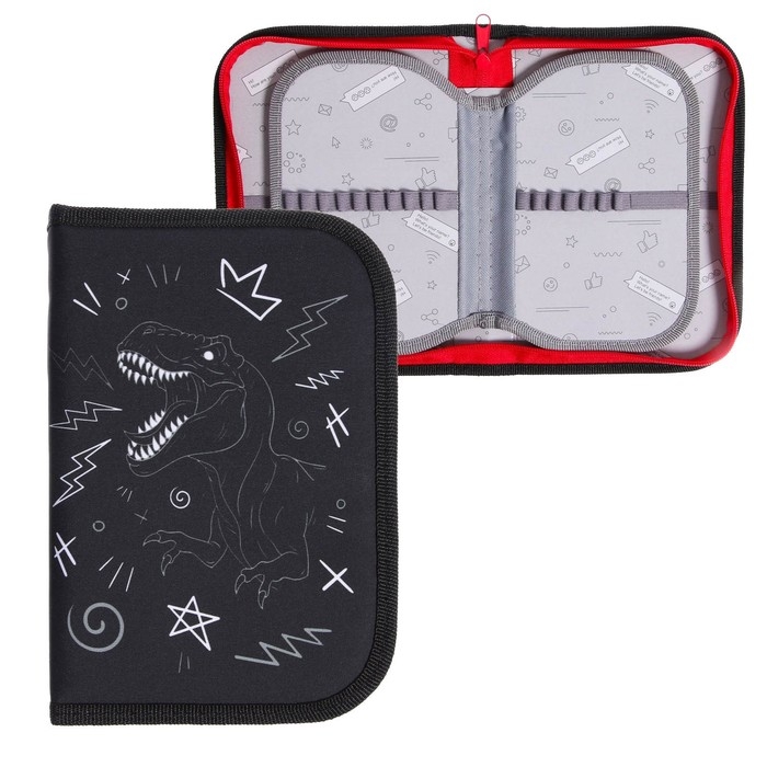 Пенал 3 секции, вкладка внутри, 140 х 210 х 40 мм, тканевый, Calligrata TOP Block "Дино"