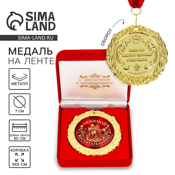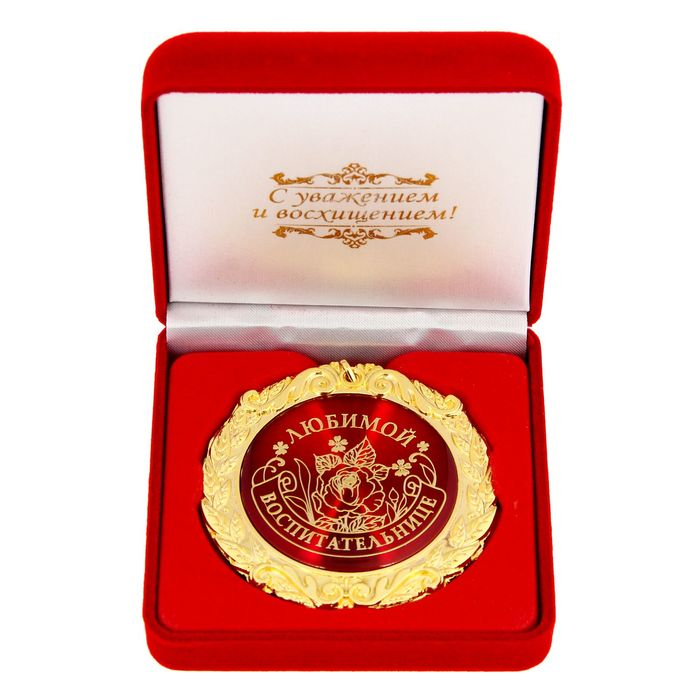 Медаль в бархатной коробке «Любимой воспитательнице», d = 7 см.