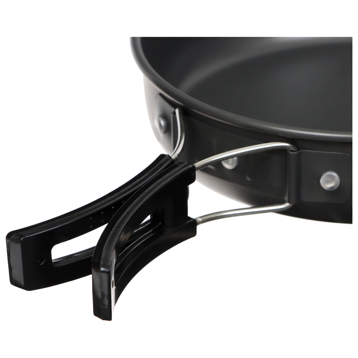 - Компактный и лёгкий набор позволяет экономить место в рюкзаке. Предметы складываются друг в друга для удобства перевозки.