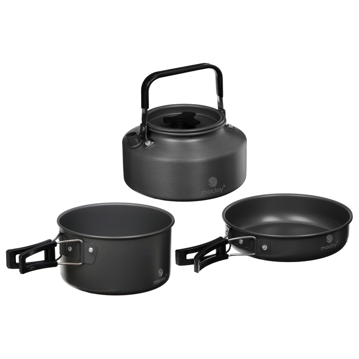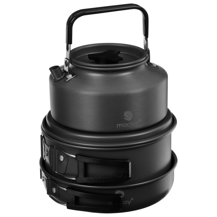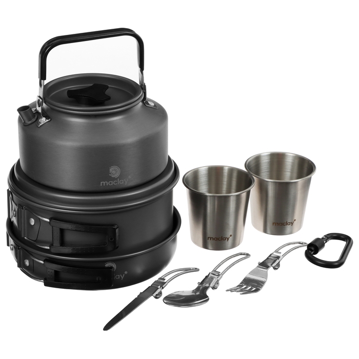 Набор туристической посуды Maclay: чайник, кастрюля, сковорода, 3 чашки, черпак, лопатка, губка