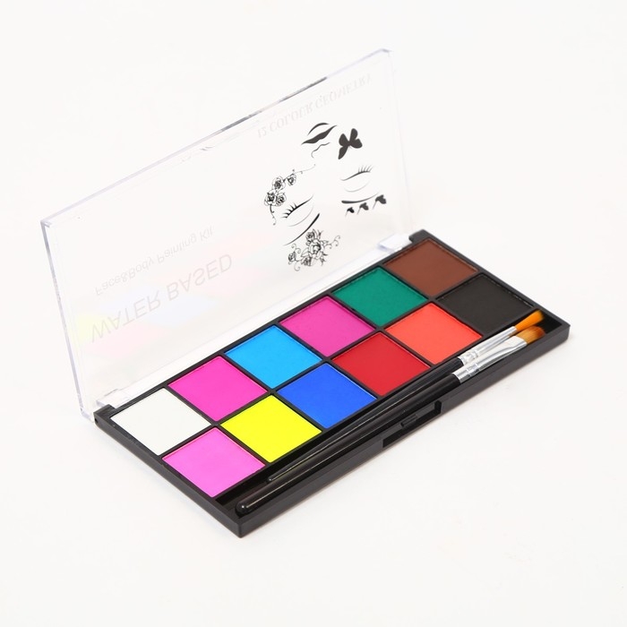 Аквагрим профессиональный для лица и тела 12 цветов + 2 кисточки