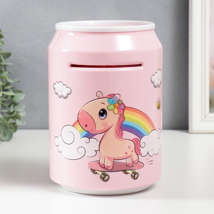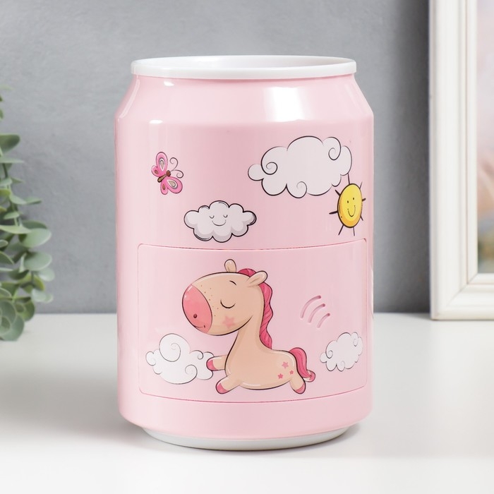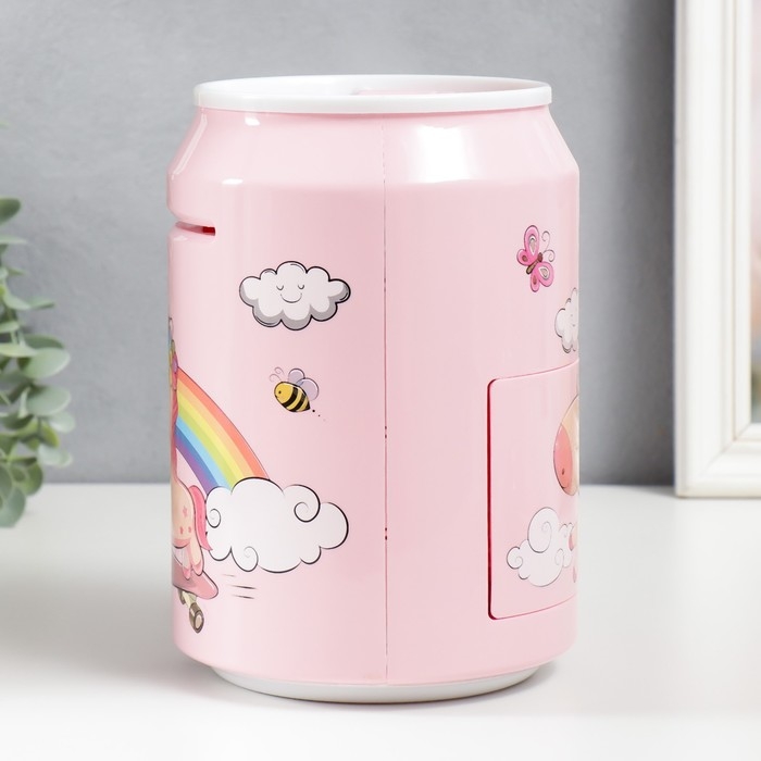 Копилка пластик "Банка. Единорог" кодовый замок, звук АА розовый 15х21 см