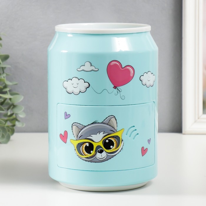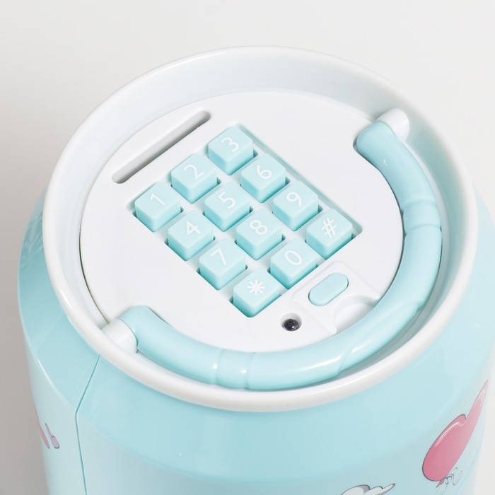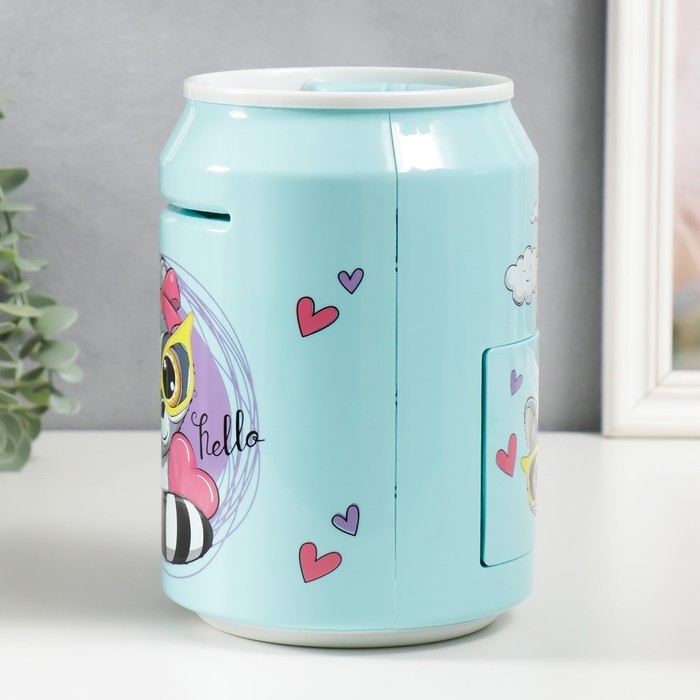 Копилка пластик "Банка. Енотик" кодовый замок, звук АА голубой 15х21 см