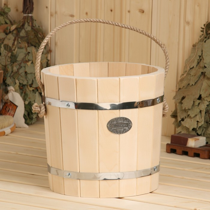 Ведро-запарник из липы, 10 л, нержавеющий обруч, ручка-веревка, "Добропаровъ"
