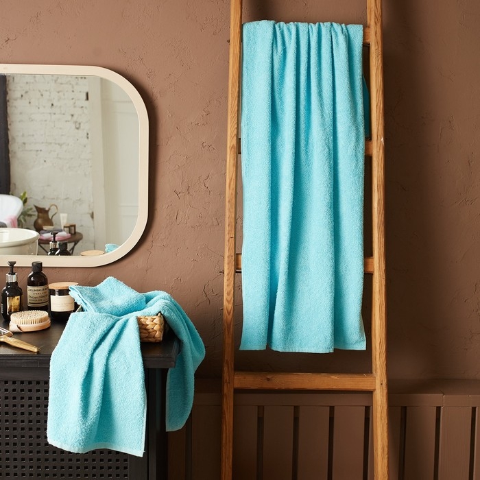 Полотенце махровое Экономь и Я 70*140 см, цв. голубой, 100% хлопок, 320 гр/м2