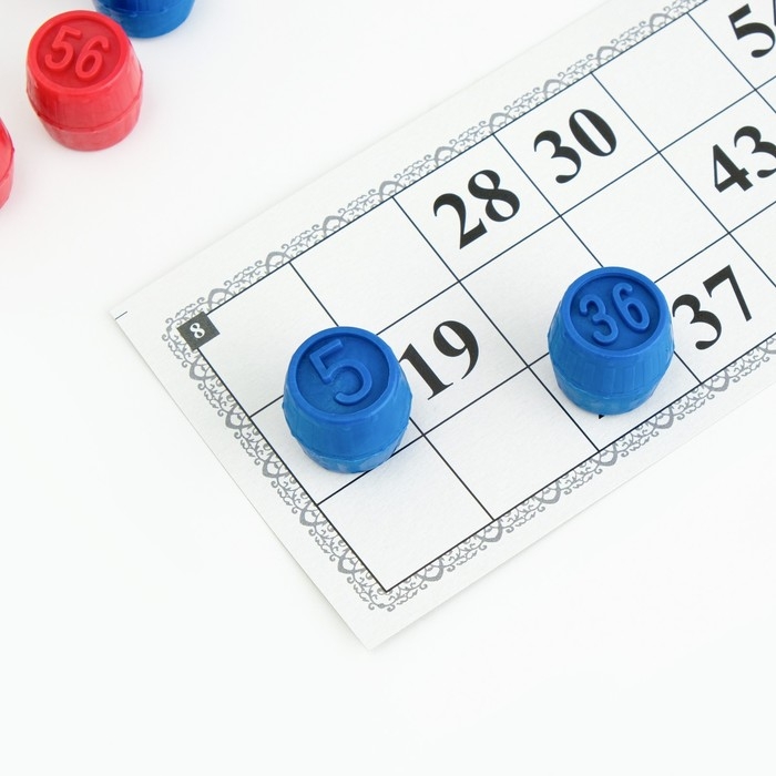 Ведущий, не глядя, вынимает из мешочка бочонок и вслух объявляет номер. Если у играющих в карточках есть такой номер, то он закрывается заставкой (для заставки можно использовать любые мелкие предметы или бочата)