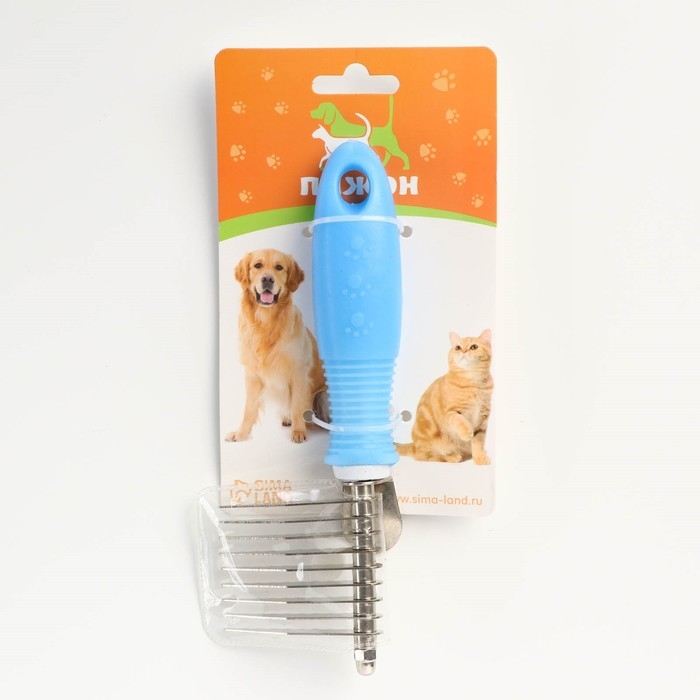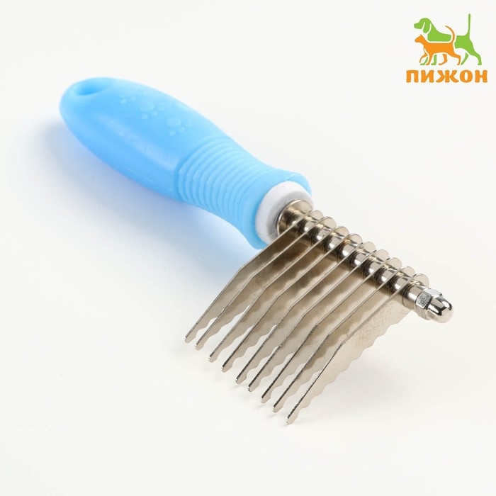 Колтунорез боковой "Комфорт" 9 лезвий, нескользящая резиновая ручка, голубой