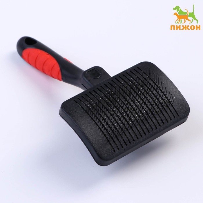Изделие удобно лежит в руке и не причиняет дискомфорта животному при вычесывании.