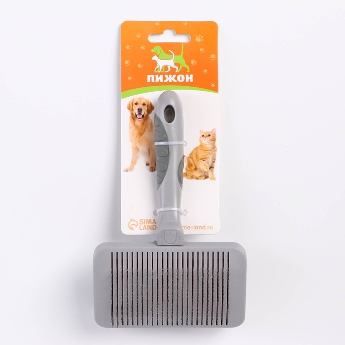 Изделие удобно лежит в руке и не причиняет дискомфорта животному при вычесывании.