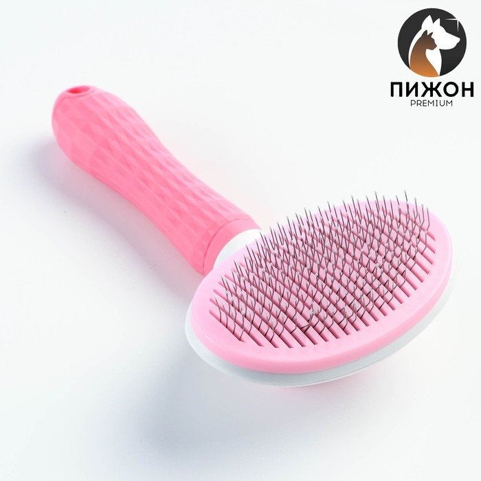 Пуходёрка с самоочисткой Пижон Premium округлая, с каплями, 10 х 19 см, розовая