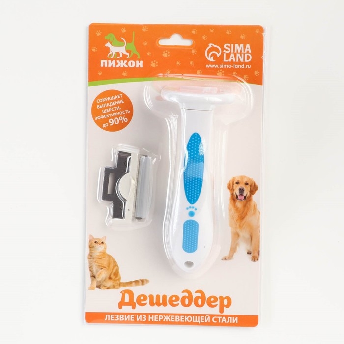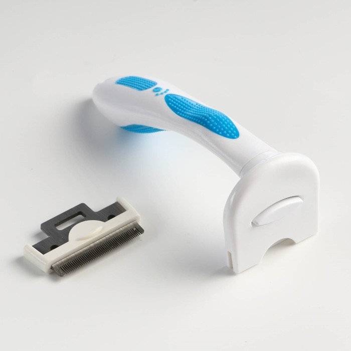 Дешеддер средний со съёмным лезвием, 15 х 7,8 см, бело-голубой