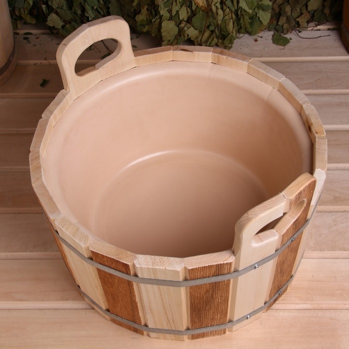 Шайка-таз из липы, 12 л, пластиковая вставка, ТЕРМО